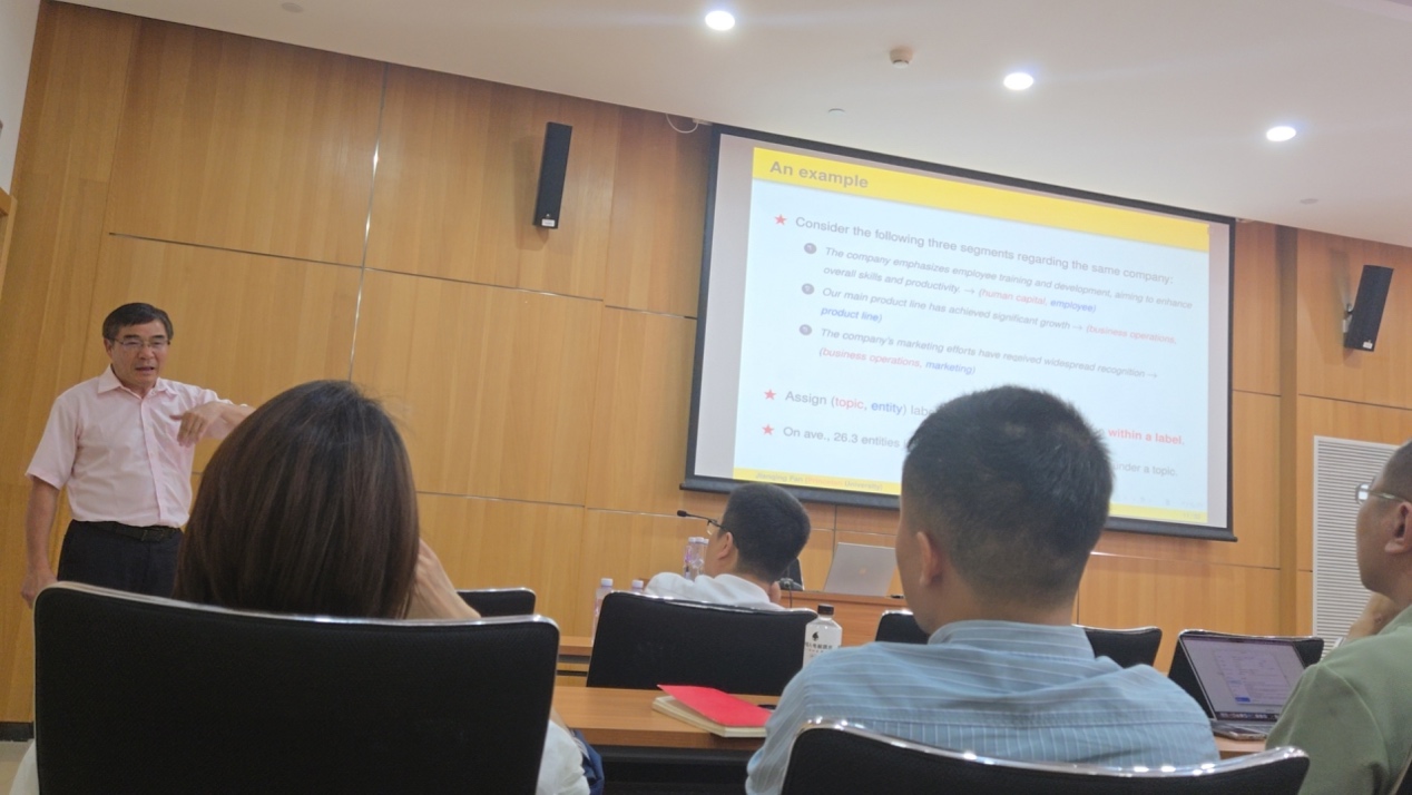 报告中,范剑青教授介绍了与合作者的最新研究:利用机器学习与人工智能构建企业虚假信息分析框架,通过非结构化文本转化、提取“可靠性加权共识”及评估偏离程度,实现虚假信息定量识别。研究显示,财务薄弱或治理水平低的企业虚假信息程度更高,重大事件时呈激增趋势,且对投资者行为、资产收益等影响显著。与会师生与范剑青教授就研究方法、政策含义等深入交流,思想碰撞频繁。