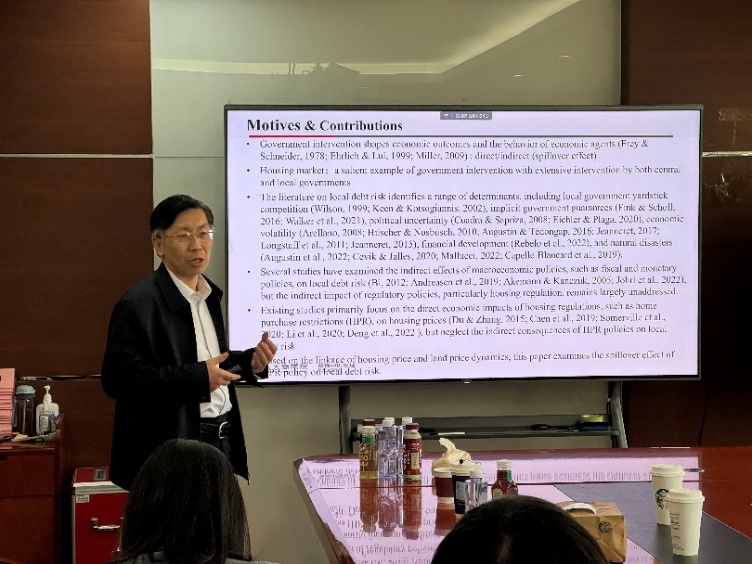 3月27日,况伟大教授作了题为《住房调控与地方债务风险:基于中国限购政策的实证研究》(《Does Housing Regulation Affect Local Debt Risk: Evidence from Home Purchase Restriction Policy in China》)的学术报告。报告基于2003-2020年中国247个地级市城投债、住房及土地交易数据,发现实施住房限购政策的城市城投债利差平均高出14.81%,该政策通过抑制房价和地价增长加剧了地方债务风险,并导致财政支出缩减,且此效应在楼市下行期及住房库存较高的非一线城市尤为显著。