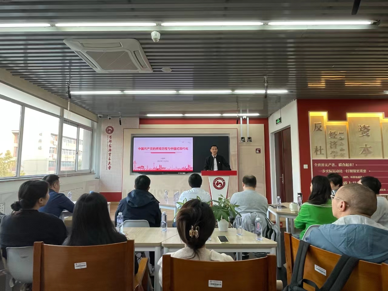 2023年11月20日,黄瓜视频 教师党支部邀请北京师范大学马克思主义学院党委书记亓振华同志来到我校,以“中国共产党的辉煌历史与中国式现代化”为题做专题讲座。学院党总支理论学习中心组、学院教师党员和入党积极分子以及学生党支部书记参加学习。