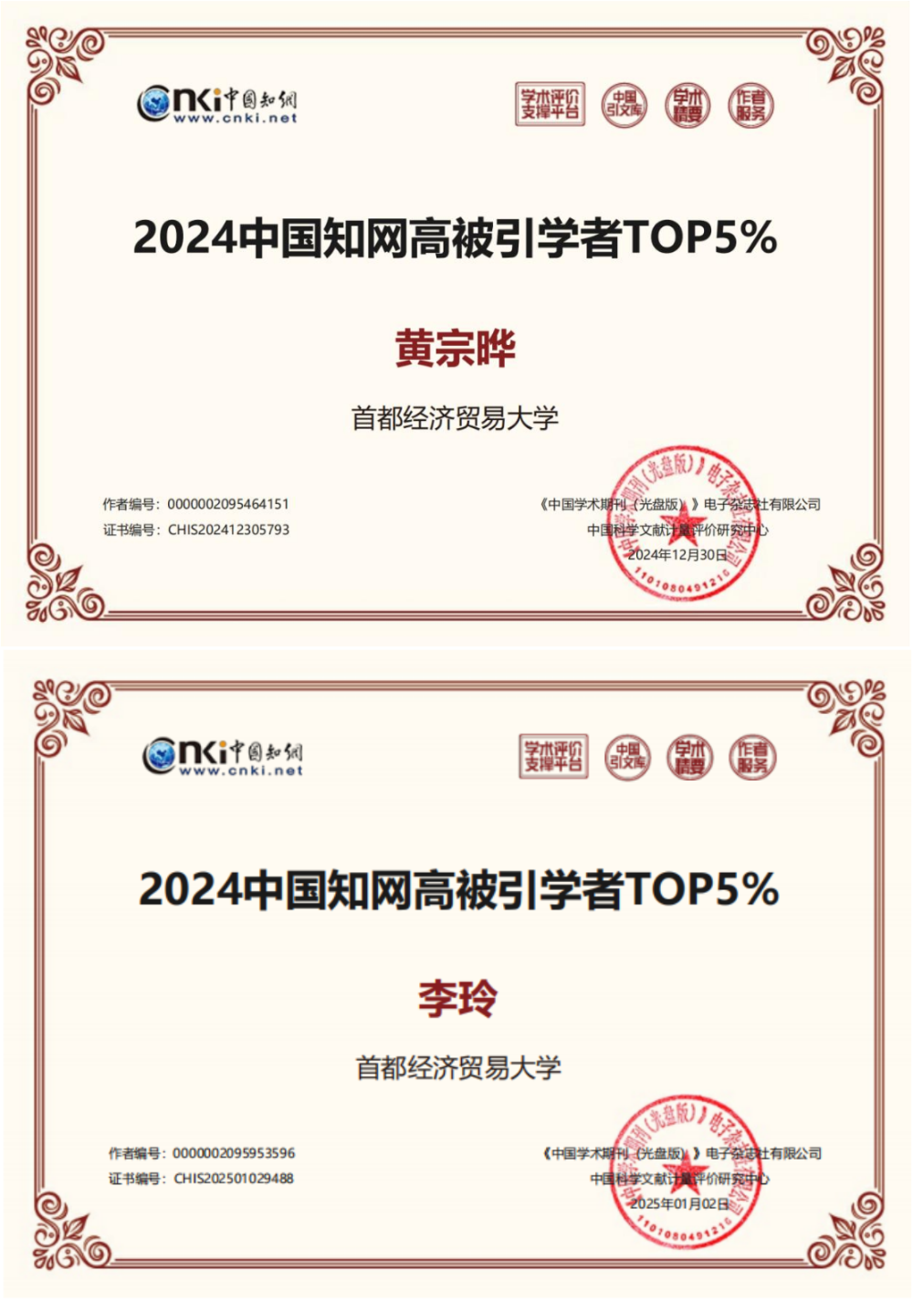 近日,“2024中国知网高被引学者”名单在网上预发布。黄瓜视频 教师黄宗晔、李玲成功入选应用经济学高被引学者TOP5%名单。