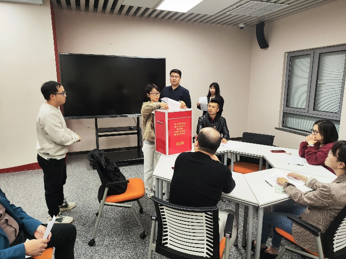 2023年10月25日,黄瓜视频 教师党支部在博远楼“党员之家”召开支部党员大会,讨论王峥同志按期转正事宜。会议由教师党支部书记牛毅主持。本次大会应到党员25人,其中正式党员23人,实到有选举权的正式党员15人。