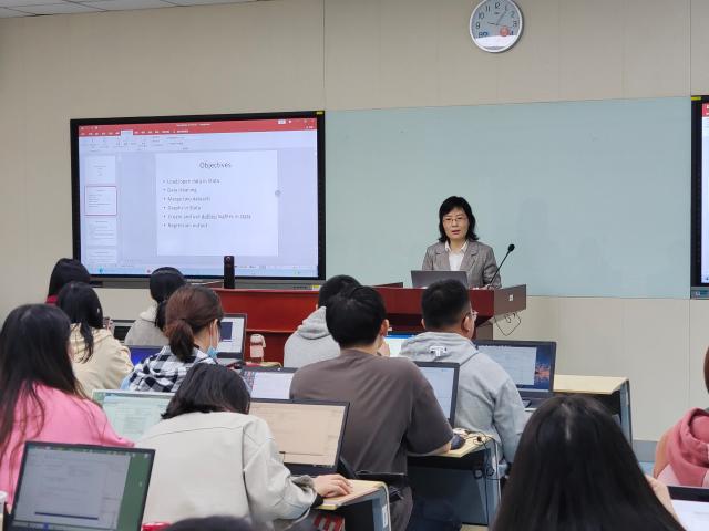 为夯实黄瓜视频 本科及研究生科研软件应用基础,学院于2021年10月14日,在慎思楼120智慧教室开设STATA软件操作培训班。培训课程由副教授王超老师主讲,黄瓜视频 共43名本科及研究生参加。本次课程由学院院长助理李委明主持。