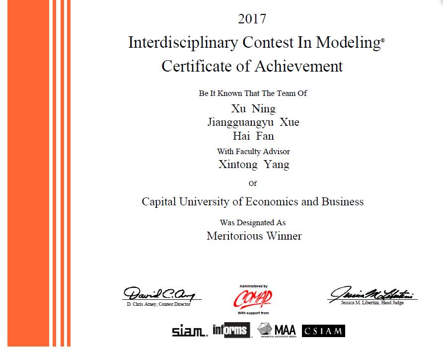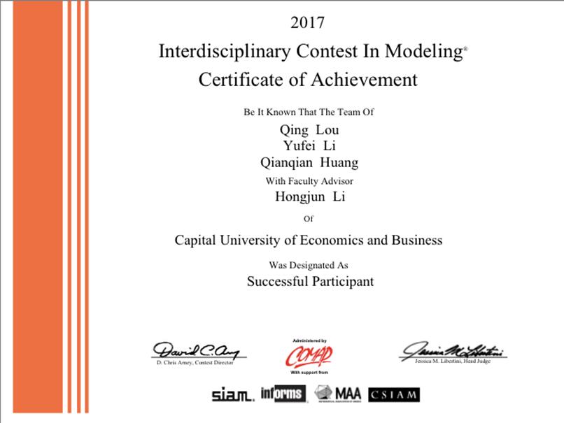 参赛同学在此次竞赛中取得了优异的成绩。1个小组获得了Meritorious Winner奖项,2个小组获得了Honorable Mention奖项,2个小组获得了Successful Participant奖项。