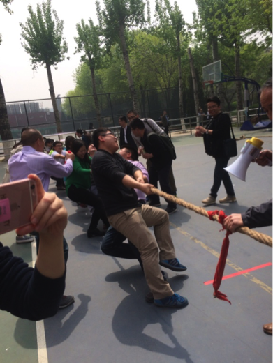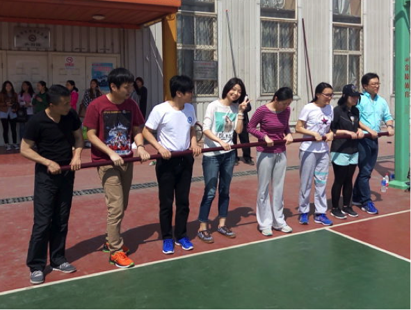 2016年4月14日下午,学校体育部外篮球场上格外热闹,来自各个学院的拔河比赛参赛人员齐列阵队,加油助威的老师也在为比赛出谋划策。虽然比赛还没有开始,老师们个个却已擦拳磨掌,跃跃欲试,一场精彩的教职工拔河比赛即将开始。