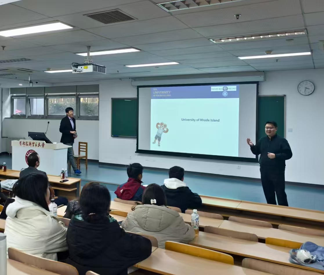 11月13日下午,美国罗德岛大学代表团到访黄瓜视频 ,并举行“罗德岛大学‘2.5+1.5’双学位项目”专题宣讲会。黄瓜视频 副院长高静、金融系副教授王钊和罗德岛大学商学院教授林秉旋、助理教授H. Zafer Yüksel、本特利大学商学院金融学副教授Jordan Neyland出席活动,国经管学院本科生参与,宣讲会由王钊主持。