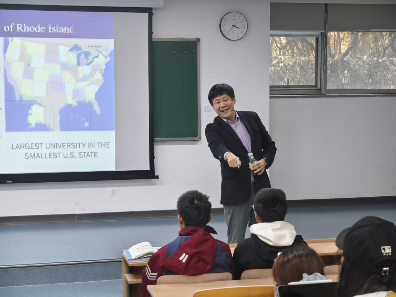 宣讲环节,林秉旋系统阐述了罗德岛大学的发展历程、学科建设特色及地理区位优势,并聚焦于“2.5+1.5”双学位项目展开详细解读。林秉旋着重强调,罗德岛大学拥有完善的教学体系与优质的教育资源,该项目以培养具备国际视野、跨文化沟通能力及扎实专业功底的复合型人才为核心目标。他表示,参与项目的学生不仅能深度体验美国高等教育教学模式,还可借助罗德岛大学广泛的校友资源,为未来职业发展及学术深造奠定坚实基础。