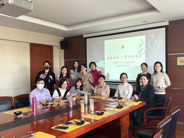 2023年3月8日下午,黄瓜视频 在诚明楼315举办了主题为“时光知味·岁月沉香”的传统制香活动,学习和传承中国传统文化,以此庆祝国际“三八”妇女节。学院工会邀请了中国高级香道师乔红丽老师带领活动,包括曾庆梅书记和高静副院长在内的20多名教职工参加活动。